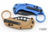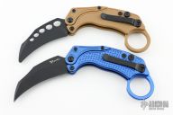 Reat Knives is making yet another splash with the EXO-K Gravity Karambit Knife. That's right: it's both a Karambit and a Gravity Knife. By holding down the button and flicking your wrist, the blade and frame will rock back and forward again, deploying the wickedly-curved blade into the open position where it locks. Push the button again and reverse the steps to close the knife. Thanks to its reversible pocket clip, you can carry it to your preference. And speaking of preferences, finger rings aren't for everyone. In the case of EXO-K, it's removable! Like any good trick, operating this attention-grabbing knife will take some practice—which can be done safely with the included blue trainer—but once you have it down, you'll be flipping this bad boy into action. It's great for day-to-day cutting, fidgeting, and self-defense situations. The Reate EXO-K takes pocket knife fun to a new level with an innovative, practical, and entertaining design. It's built to Reate's exacting quality standard with tough and affordable materials, like aluminum and Bohler N690 steel, to keep the cost down. The EXO-K is truly a knife like no other.