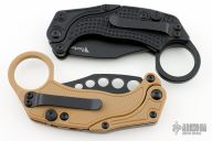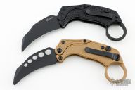 - Blade: Hawkbill-style Karambit blade made from black PVD-coated Bohler N690 steel.