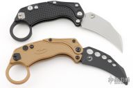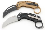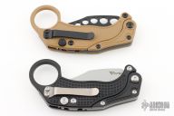 Reat Knives is making yet another splash with the EXO-K Gravity Karambit Knife. That's right: it's both a Karambit and a Gravity Knife. By holding down the button and flicking your wrist, the blade and frame will rock back and forward again, deploying the wickedly-curved blade into the open position where it locks. Push the button again and reverse the steps to close the knife. Thanks to its reversible pocket clip, you can carry it to your preference. And speaking of preferences, finger rings aren't for everyone. In the case of EXO-K, it's removable! Like any good trick, operating this attention-grabbing knife will take some practice—which can be done safely with the included blue trainer—but once you have it down, you'll be flipping this bad boy into action. It's great for day-to-day cutting, fidgeting, and self-defense situations. The Reate EXO-K takes pocket knife fun to a new level with an innovative, practical, and entertaining design. It's built to Reate's exacting quality standard with tough and affordable materials, like aluminum and Bohler N690 steel, to keep the cost down. The EXO-K is truly a knife like no other.