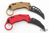 - Blade: Black hawkbill-style Karambit blade made from Bohler N690 steel.