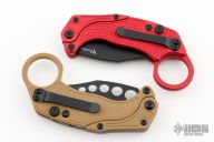Reat Knives is making yet another splash with the EXO-K Gravity Karambit Knife. That's right: it's both a Karambit and a Gravity Knife. By holding down the button and flicking your wrist, the blade and frame will rock back and forward again, deploying the wickedly-curved blade into the open position where it locks. Push the button again and reverse the steps to close the knife. Thanks to its reversible pocket clip, you can carry it to your preference. And speaking of preferences, finger rings aren't for everyone. In the case of EXO-K, it's removable! Like any good trick, operating this attention-grabbing knife will take some practice—which can be done safely with the included blue trainer—but once you have it down, you'll be flipping this bad boy into action. It's great for day-to-day cutting, fidgeting, and self-defense situations. The Reate EXO-K takes pocket knife fun to a new level with an innovative, practical, and entertaining design. It's built to Reate's exacting quality standard with tough and affordable materials, like aluminum and Bohler N690 steel, to keep the cost down. The EXO-K is truly a knife like no other.