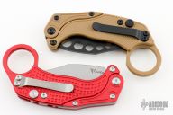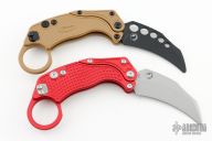 Reat Knives is making yet another splash with the EXO-K Gravity Karambit Knife. That's right: it's both a Karambit and a Gravity Knife. By holding down the button and flicking your wrist, the blade and frame will rock back and forward again, deploying the wickedly-curved blade into the open position where it locks. Push the button again and reverse the steps to close the knife. Thanks to its reversible pocket clip, you can carry it to your preference. And speaking of preferences, finger rings aren't for everyone. In the case of EXO-K, it's removable! Like any good trick, operating this attention-grabbing knife will take some practice—which can be done safely with the included blue trainer—but once you have it down, you'll be flipping this bad boy into action. It's great for day-to-day cutting, fidgeting, and self-defense situations. The Reate EXO-K takes pocket knife fun to a new level with an innovative, practical, and entertaining design. It's built to Reate's exacting quality standard with tough and affordable materials, like aluminum and Bohler N690 steel, to keep the cost down. The EXO-K is truly a knife like no other.