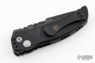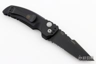 This EX-A01 by Hogue Knives is an Allen Elishewitz design, it features a black tanto partially serrated 154CM blade with notched thumbrest. The handle is black aluminum, tip up or down reversible black stainless steel clip. Has safety. Comes with Hogue box and papers. Excellent condition.