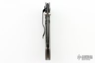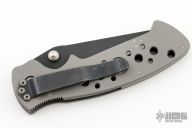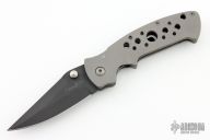 This Kasper Framelock from Pat & Wes Crawford features a black blade with swedge and dual thumbstuds. The handle has a skeletonized bead blasted titanium frame over a bead blasted stainless steel backspacer. Black Stainless steel tip down pocket clip.  Includes a nylon sheath.  Excellent Condition.