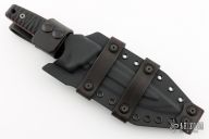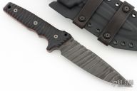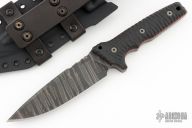 This M-15 by Miller Bros Blades features a drop point blade with swedge, notched thumbrest made from Z-Wear PM steel, .319" blade stock 1.608" blade depth, full tang construction. The handle has textured black G-10 scales with red liners, notched tang, lanyard hole at the butt. Comes with a kydex/leather sheath. Comes with COA dated 2023. New Condition.