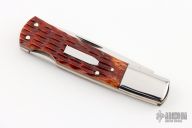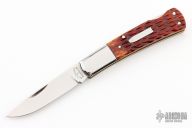 This Lockback features a mirror polished blade with nail nick. The handle has stainless steel bolsters and escutcheon, jigged bone scales, brass liners and a stainless steel spring. Excellent Condition.