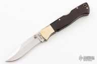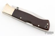 This Mamba Lockback from Blackjack Knives features a satin finished recurve blade with dual checkered thumbstuds. The handle has nickel silver bolsters, nickel silver liners and pins. The handle has rosewood scales and a stainless rockerbar. Has a couple light scratches, otherwise excellent condition.