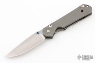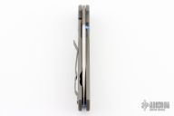 This Small Sebenza Classic by Chris Reeve features a tumble finish blade and bead blasted titanium frame. Anodized titanium thumbstud and barrel spacer. Lanyard hole in pommel. Has scuffs and scratches but would make a good user.