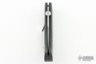 This lock back folding knife by Jess Horn features a hand rubbed satin finish blade with thumbdisc. The handle has black linen micarta handle, stainless steel spring, tip up reversible stainless steel clip. Excellent fit and finish. Excellent condition. Comes with zippered case. #008