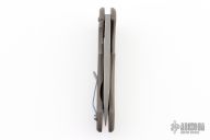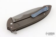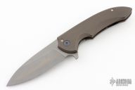 The knife features a dark tumbled drop point blade. The handle has a tumbled titanium frame with an anodized titanium tip up pocekt clip. Includes a padded zippered case. Includes a padded zippered case. Excellent Condition.