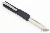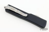 This UTX-70 OTF automatic by Microtech features a S/E satin finish blade with a standard edge. The handle has a black aluminum frame with blasted stainless steel tip down clip. Serial number 085 and dated 04/2018. Proof Run. Has a couple very light scuffs on the frame, otherwise excellent condition.