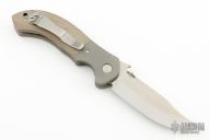 This Appalachain by Emerson knives features a satin finished clip point blade, dovetailed bead blasted titanium bolsters, and green micarta scales. Stainless steel clip, tip up carry. Has thumb disc and wave feature. Includes original box. Excellent Condition.