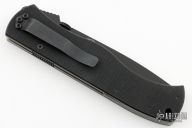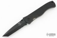 The 970 is the Benchmade version of the Emerson CQC7 folder. Black chisel ground partially serrated tanto blade, black G-10 scales, titanium liners and a black tip down stainless steel clip. Has some light scuffs, otherwise excellent condition.