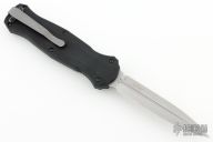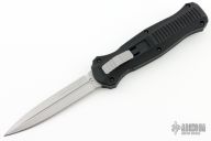 "Introducing an OTF like none-other.. The new Infidel® is rapidly making believers out of many a skeptic. Built for strength and reliability the patent pending double-action mechanics get it done over the long haul. Grab on and you will find the handle grip rock-solid with its patented machined in Presidio® style bi-directional tread pattern, and overall generous sizing for gloved hands. Intuitively pressure the release-slide forward and its spear-point edged steel fires and locks up with a unique three-point retention system with amazingly negligible blade play. Reverse the process and the blade retracts in a rapid blur of motion. The Benchmade Infidel is a special operator’s fantasy come true." Comes with original box and nylon belt sheath. Has a couple light scuffs on the frame, excellent condition otherwise.