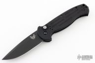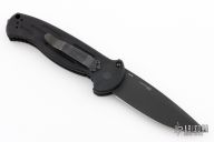 This 9051 AFO II auto from Benchmade has a black spear point blade with false top edge. Black anodized aluminum handle. Integrated safety system. Black stainless steel clip - 4 way reversible, and lanyard hole. Comes with original box, sheath and papers. Excellent condition.