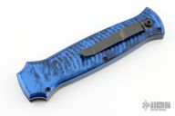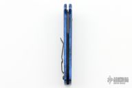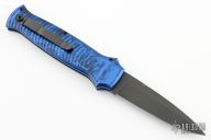 The Bodyguard side opening auto by Piranha Knives features a black blade. The handle has a blue/black aluminum frame with a black pocket clip. Comes with original box and papers. Excellent condition.