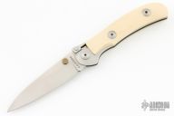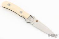 This One Hand Knife features ivory paper micarta scales. Excellent condition.