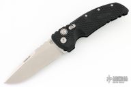 The EX-A01 was produced in conjunction with famous knife designed Allen Elishewitz and was created in a push-button automatic version after the popularity of the original manual folder. Offered in a multitude of handle colors, materials, sizes and finishes, each product comes complete with a high flat ground stainless steel blade as well as an over-sized push button and front-mounted slide safety. This model features a black G-10 frame complete with a tread pattern, a clip point style blade in a tumbled finish and the reversible pocket clip is designed for the traditional side of the handle only but is eligible for a tip up or tip down carry option. Made in the USA.