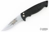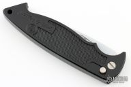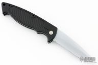 This auto from Smith & Wesson has a bead blasted blade with false top edge. Black aluminium handle. Comes with original box and belt sheath. Has a couple light scuffs, otherwise excellent condition.