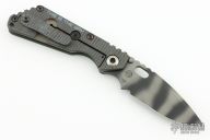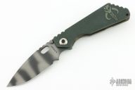 This MSC SNG framelock folder by Mick Strider features a tiger striped blade and a green aluminum and flamed titanium frame and tip up titanium clip. Includes Hinderer "Lock Bar Stabilizer" for maximum reverse lock retention. Nice detent, lockup and blade seating. Excellent Condition.
