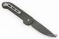 This LUDT side opening automatic by Microtech has a black blade with a standard edge and a black aluminum frame. Bead blasted fittings. Stainless steel clip. Dated 06/2001 and serial number 2513. Includes a nylon sheath.  Has a light scuff on the pocket clip otherwise the knife is in Excellent Condition.