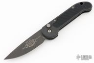 This Mini UDT has a black plain edge blade. The handle features a black aluminum frame with non-slip inserts and safety on the spine. S/N 1003. Dated 08/2002. Includes a nylon sheath. Excellent Condition.