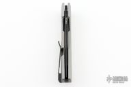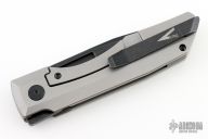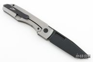 This Impulse by Vero Engineering features a black washed blade with notched thumbrest and flipper. The handle has a tumbled titanium frame with black titanium hardware, tip up clip with hidden screws and backspacer. Nice detent, lockup and blade seating. Comes with a zippered case and COA. Excellent condition.