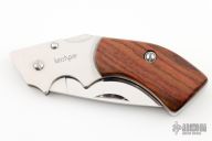 This .22CAL Folding Knife by Kershaw features a satin polished blade with nail nick. The handle has a satin finished stainless steel frame with rosewood scales, stainless steel spring. Comes with a brown leather sheath. Excellent condition.