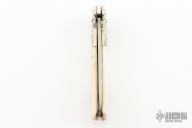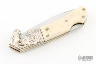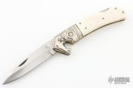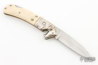 This lockback features a satin finished blade with nail nick. The handle has nickel silver bolsters, white bone scales, brass liners and a stainless steel backspacer. Nice lockup. Has some light scratches, otherwise excellent condition.