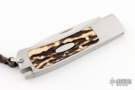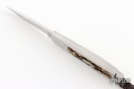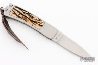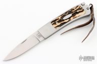 Backlock folder designed by Ron Lake and manufactured in China by CAS Iberia. This knife has the quality and workmanship of a custom made knife. One of 500 made. Featured on the cover of Blade 2002. Ron called this a "Completely Hand-crafted Knife" and you'll agree. As good or better than most customs at this price. Comes with leather pouch. Has some light scuffs and scratches, great condition otherwise.
