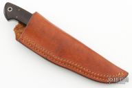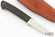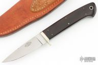 This Utility Hunter by Corbit Sigman features a satin finished blade with a full tapered tang construction, .104" blade stock and .785" blade depth. The handle has a nickel silver guard with cocobolo scales and nickel silver pins. Includes a brown leather sheath. Has a couple small rust spots on the blade, otherwise good condition.