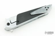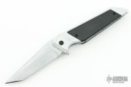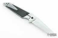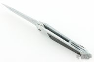 This MK10 flipper by Will Moon features a white coated blade. The handle has a white titanium frame with a black G10 inlay and a G10 backspacer.  Tip up G10 pocket clip. Storm Trooper motif. Nice detent, lockup and blade seating. Excellent Condition.