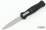 "Introducing an OTF like none-other.. The new Infidel® is rapidly making believers out of many a skeptic. Built for strength and reliability the patent pending double-action mechanics get it done over the long haul. Grab on and you will find the handle grip rock-solid with its patented machined in Presidio® style bi-directional tread pattern, and overall generous sizing for gloved hands. Intuitively pressure the release-slide forward and its spear-point edged steel fires and locks up with a unique three-point retention system with amazingly negligible blade play. Reverse the process and the blade retracts in a rapid blur of motion. The Benchmade Infidel is a special operator’s fantasy come true." Comes with benchmade belt sheath, box and papers. Has some scuffs otherwise the knife is in Excellent Condition.