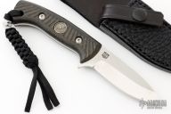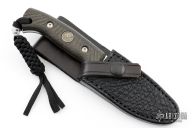 This 30th anniversary fixed blade features an 1/8" satin finish blade with a 1" blade depth. Black canvas micarta handle with a Wilson logo inlay. Full tang construction. Comes with a black leather sheath and original box. Excellent condition.