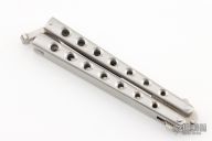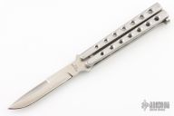 The Balisong by Schrade Cutlery features a satin finished spear point blade.  The handle has an integral stainless steel frame with a matching t-latch.  Includes the original box.  Excellent Condition.