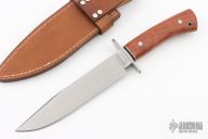 This Fisk Bowie from Camillus features a satin finished bowie blade, .184" blade stock and 1.476" blade depth, hidden tang construction. The handle has a steel guard and a maple handle. Comes with a brown leather sheath and original box, papers and zippered case. Excellent Condition.