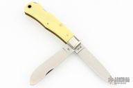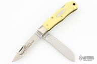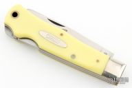This Yello-Jaket double lockback by Camillus features satin finished blades with nail nicks. The handle has nickel silver bolsters, yellow composite scales, brass liners, stainless steel backspacer. Has a couple light scratches, otherwise excellent condition. Comes with original box and papers.