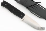 In our usual way, we have put a lot of energy into designing a safe knife sheath, which is actually where the knife will spend most of its time. The design of the sheath determines the access to the knife, and here we have really put all our efforts in order to get a safe sheath that allows easy access to the knife. The sheath has both a transport lock (the folding bracket with a strap) and a working safety detail that allows the knife to be in place until you decide to use it. It is a bit a belt-and-braces approach, but we like putting safety first – a lost knife is of no use. The transport lock will therefore allow the knife to be fastened tip-up or tip-down on the body or on your equipment without any risk.