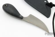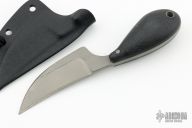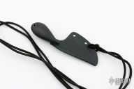 The Clinch Pick is a small fixed blade defensive knife originally designed by Trace Rinaldi, and has a bead blasted chisel ground titanium blade with a carbidized edge and black G-10 scales with lanyard hole at the butt, .135" blade stock and .974" blade depth, full tang construction. Comes with a kydex sheath. Has some light scuffs and scratches, great condition otherwise.
