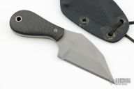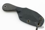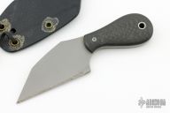 This fixed blade by Phil Rose features a bead blast finished wharncliffe chisel ground blade. Full tang construction. .133" blade stock and 1.29" blade depth. Carbon fiber scales. Nice work. Includes a kydex neck sheath. Has some light scuffs and scratches, great condition otherwise.