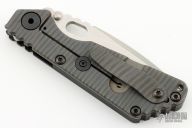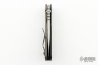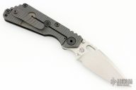This SNG framelock folder by Mick Strider features a drop point blade and a black aluminum and flamed titanium frame and tip up titanium clip. Includes Hinderer "Lock Bar Stabilizer" for maximum reverse lock retention. Nice detent, lockup and blade seating. Has a few light scuffs, otherwise excellent condition. Comes with a velcro case.