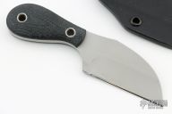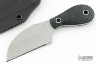 This fixed blade by Phil Rose features a bead blast finished wharncliffe drop point blade. Full tang construction. .143" blade stock and 1.097" blade depth. Carbon fiber scales. Nice work. Includes a kydex neck sheath. Has some light scuffs and scratches, great condition otherwise.