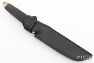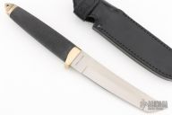 This Tanto by Cold Steel features a satin finished tanto blade with .182" blade stock and 1.123" blade depth, hidden tang construction. The handle has a brass guard and butt with rubber grip. Has a couple light scratches, otherwise excellent condition. Comes with original black leather sheath.