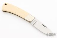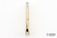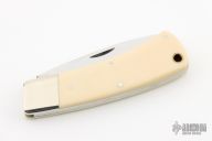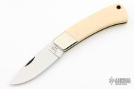 This Slipjoint by Bertram features a mirror polished blade with nail nick. The handle has nickel silver bolsters, ivory paper micarta covers, nickel silver liners and stainless steel springs. Includes the original box. Excellent condition.