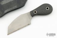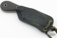 This fixed blade by Phil Rose features a bead blast finished wharncliffe chisel ground blade. Full tang construction. .131" blade stock and 1.130" blade depth. Carbon fiber scales. Nice work. Includes a kydex neck sheath. Has some light scuffs and scratches, great condition otherwise.