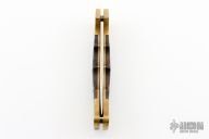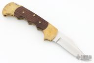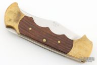 This lockback by Rigid Knives features a satin finished blade. The handle has a brass frame with rosewood inlays and a stainless steel backspacer. Nice lockup. Has some patina and scratches, otherwise good condition.