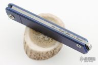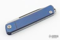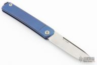 This Gentleman Jack slipjoint by Medford features a satin finished blade with long pull nail nick. Has an anodized titanium frame with stainless steel spring. Has half-stop, flush in all positions. Includes original box and papers. Excellent condition.
