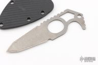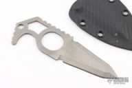 This Silence Push Dagger by Schwartz Tactical features a titanium chisel ground blade with carbidized edge.  .125" Blade Stock.  1.197" Blade Depth. The handle is skeletonized for a lighter overall weight. Comes with Kydex sheath. Light scratches are visible on the blade and handle otherwise the knife is in great condition.