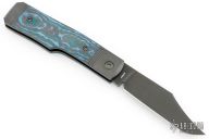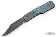 This Sharpshooter Jack is a gunstock slipjoint model by Jack Wolf Knives featuring a DLC finished clip point blade with longpull. The handle has integral pinched and fluted titanium front and rear bolsters and liners, carbon fiber scales with a stainless spring. Comes with box, metallic tube with J. Gonzo artwork, leather slip, sticker and microfiber cleaning cloth. New from Maker.