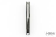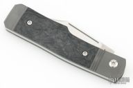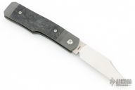 This Sharpshooter Jack is a gunstock slipjoint model by Jack Wolf Knives featuring a satin finished clip point blade with longpull. The handle has integral bead blast finish pinched and fluted titanium front and rear bolsters and liners, carbon fiber scales with a stainless spring. Comes with box, metallic tube with J. Gonzo artwork, leather slip, sticker and microfiber cleaning cloth. New from Maker.
